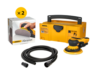 - Kit prêt à poncer.Comprend : 1 ponceuse Mirka DEROS II 5650 125/150 mm Exc. 5.0 et son Coffret de rangement, + 1 Tuyau antistatique 27 mm x 4 m + Adaptateur, 1 boite de 50 disques ABRANET 150 mm Grip P120, + 1 boite de 50 disques ABRANET 150 mm Grip P180.