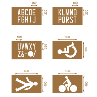 - Autres : piéton 620 x 400 mm, vélo 556 x 480 mm, handicapé 600 x 500 mm.